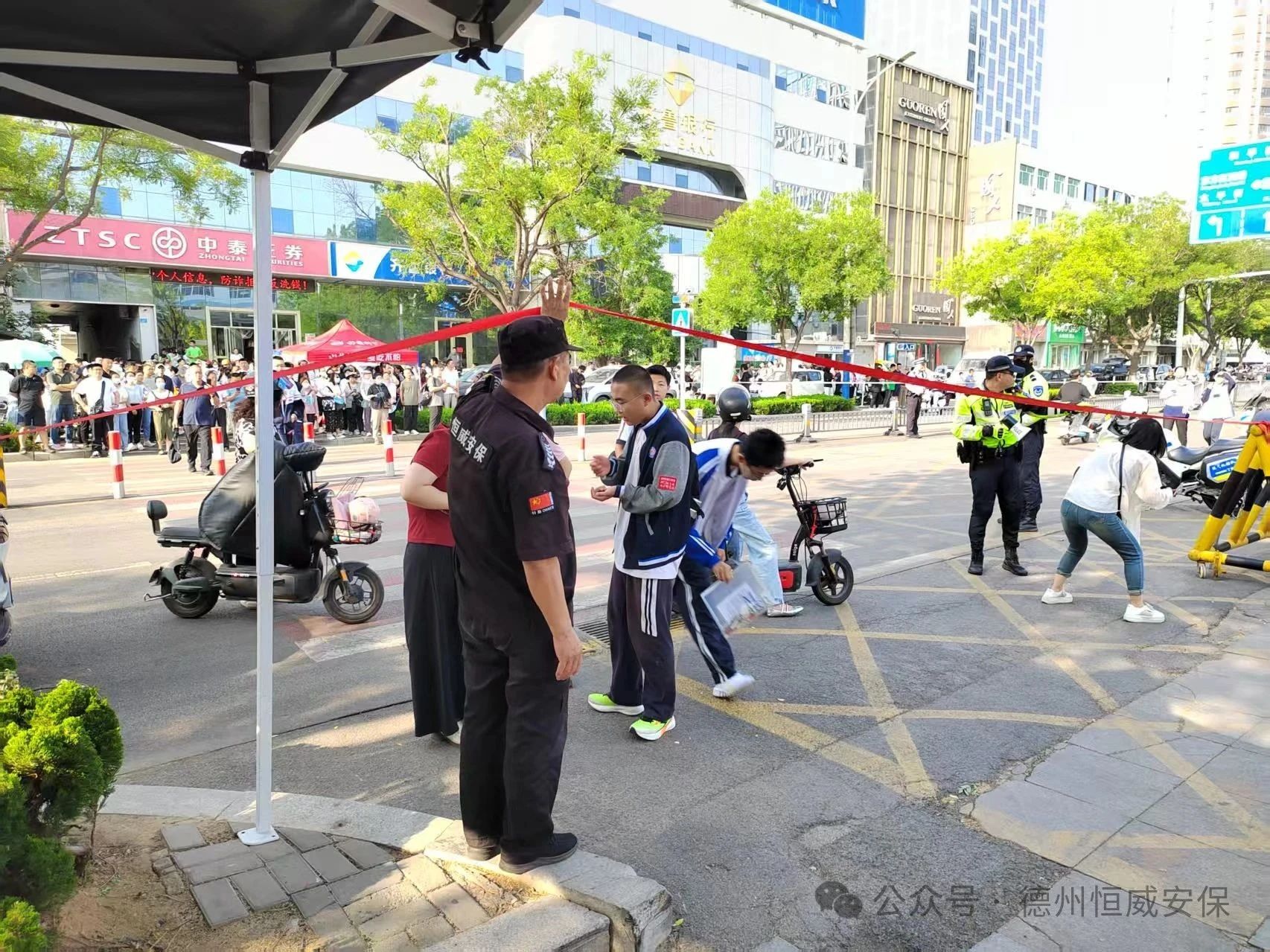 從清晨的考點準備到傍晚的考生散場,他們全程守護,全力維護著考場內外的良好秩序,有效預防和處置各類突發情況,為莘莘學子的逐夢之旅提供了堅實有力的安全保障,贏得了考生、家長及社會各界的廣泛贊譽,成為酷暑中考場外一道亮麗的平安風景線。